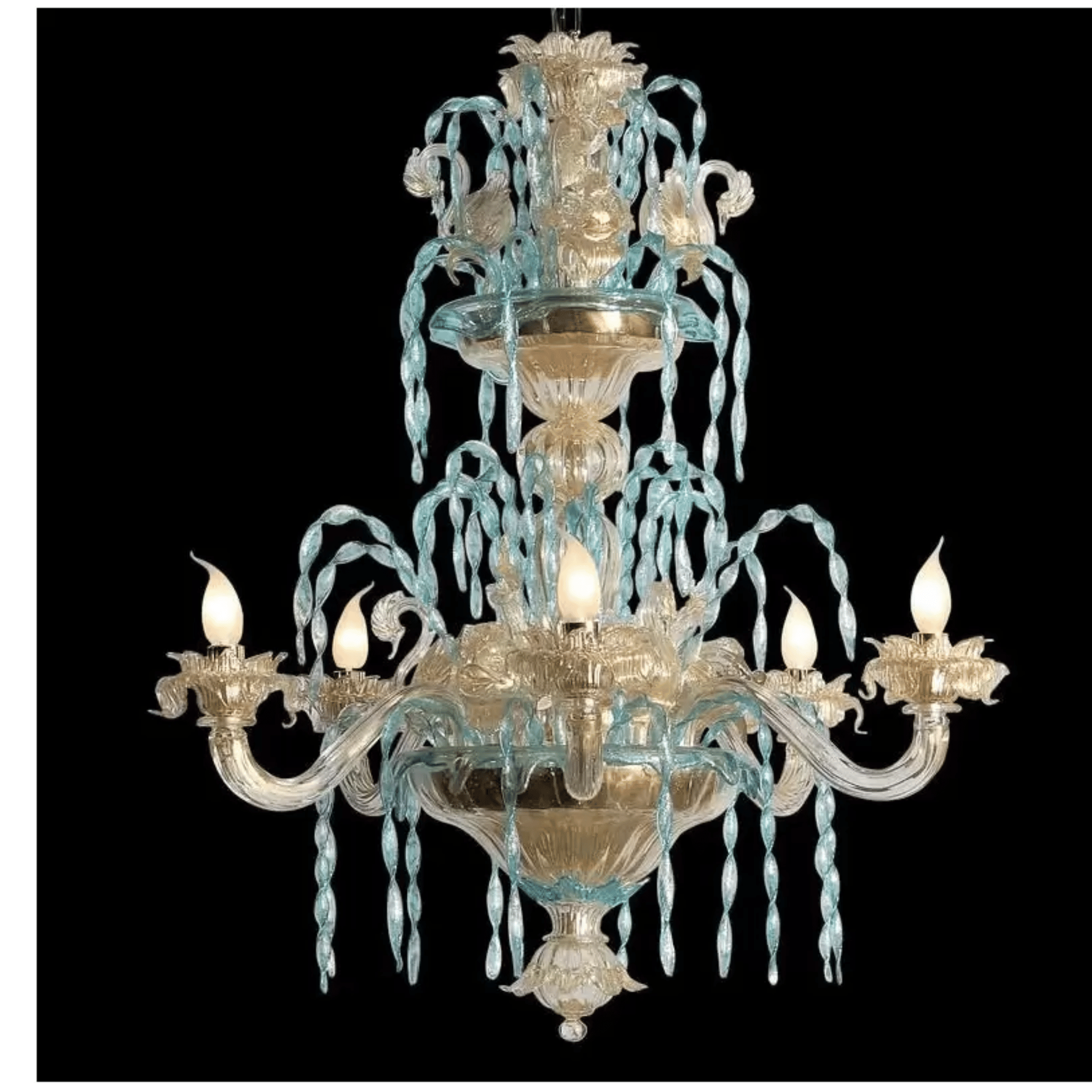 Chandelier made of Murano glass, simple yet lovely. Amber or transparent glass; various hues can be requested.