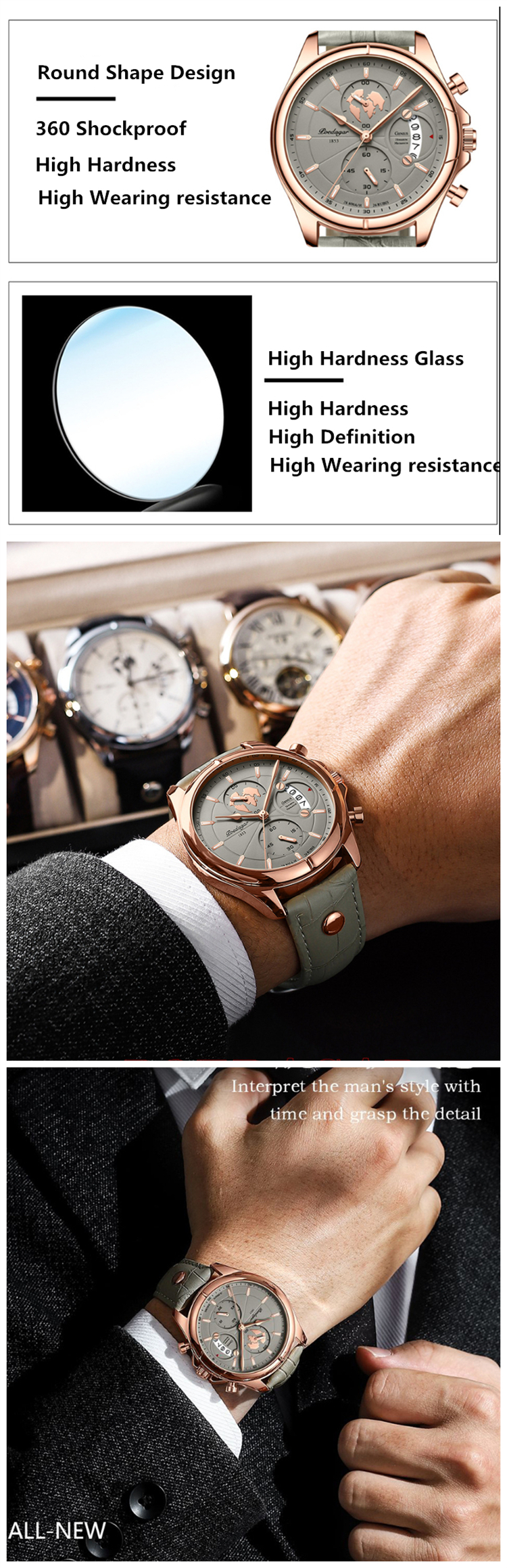 | Feature | chronograph, Day/Date, water resistant, Luminous |